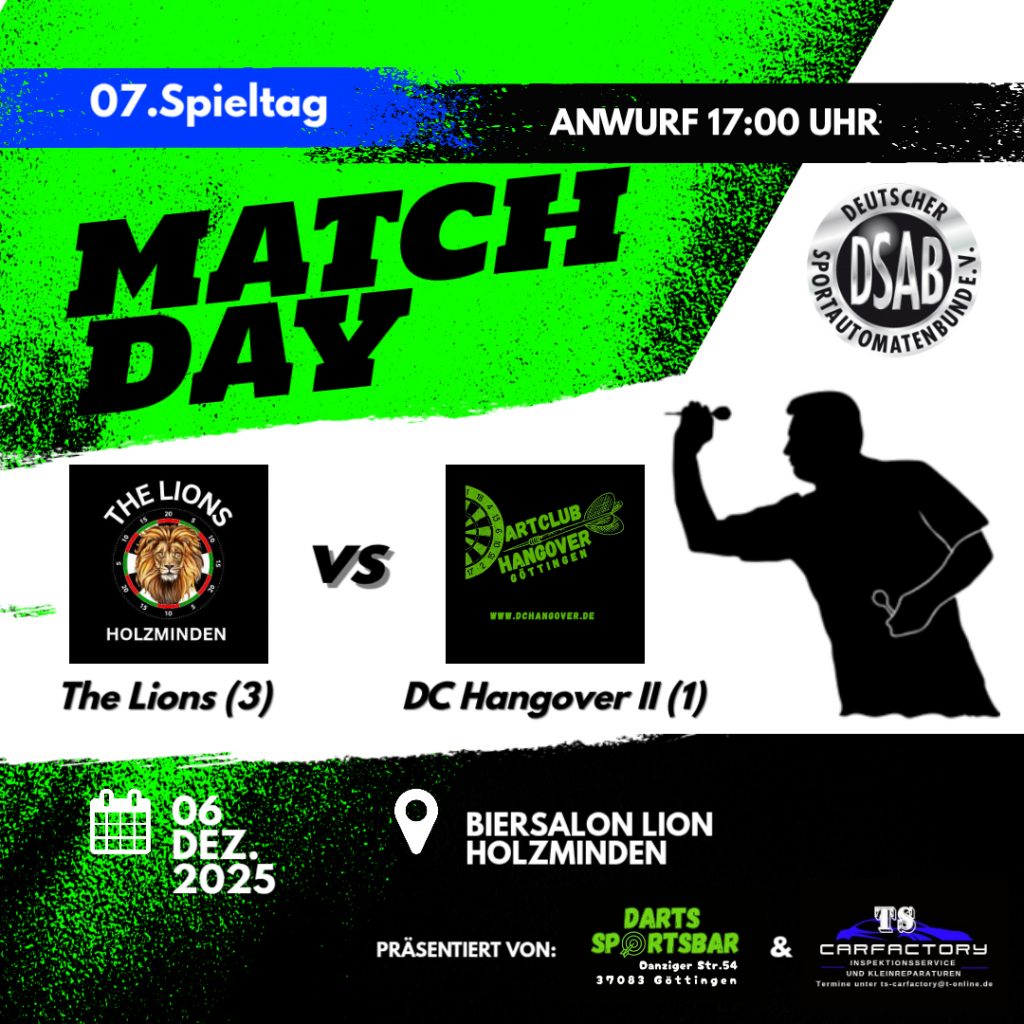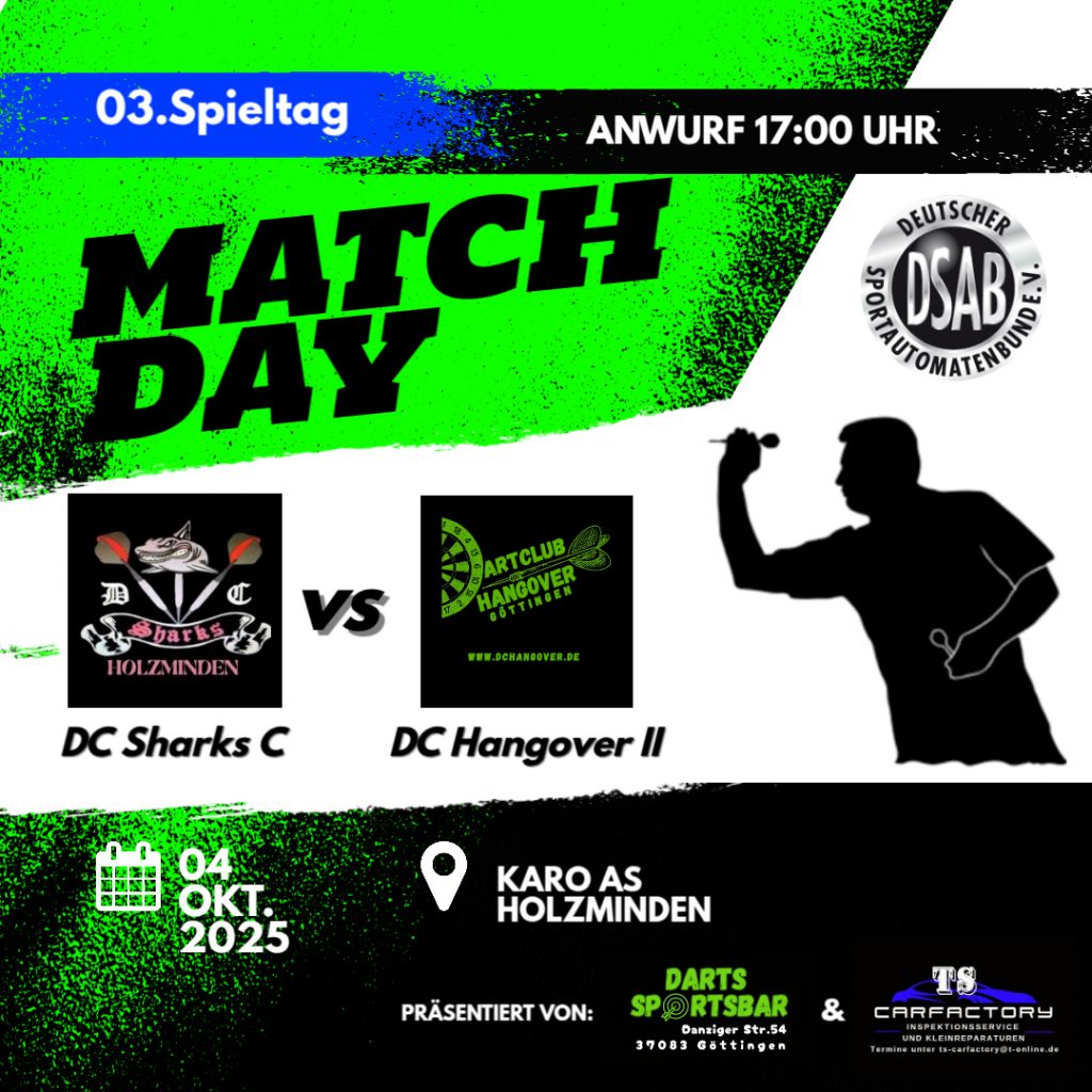 Das heutige Spiel geht gegen den 2. Platz Dartfreunde Leineberg 3, welche mit Sicherheit die Tabellenführer DC Hangover II ärgern möchten.